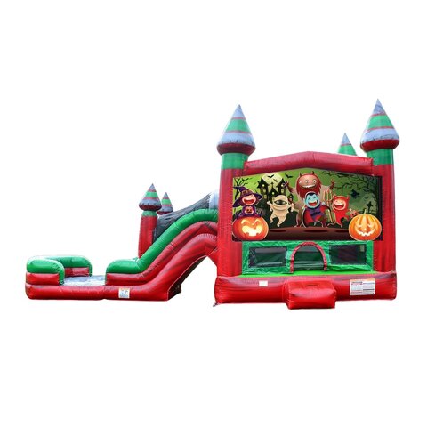 Get ready for a hauntingly fun celebration with the Halloween Dual Combo Dry! Featuring festive Halloween colors, playful spooky graphics, and a fun-not-scary design, this inflatable brings seasonal excitement that kids absolutely love.
